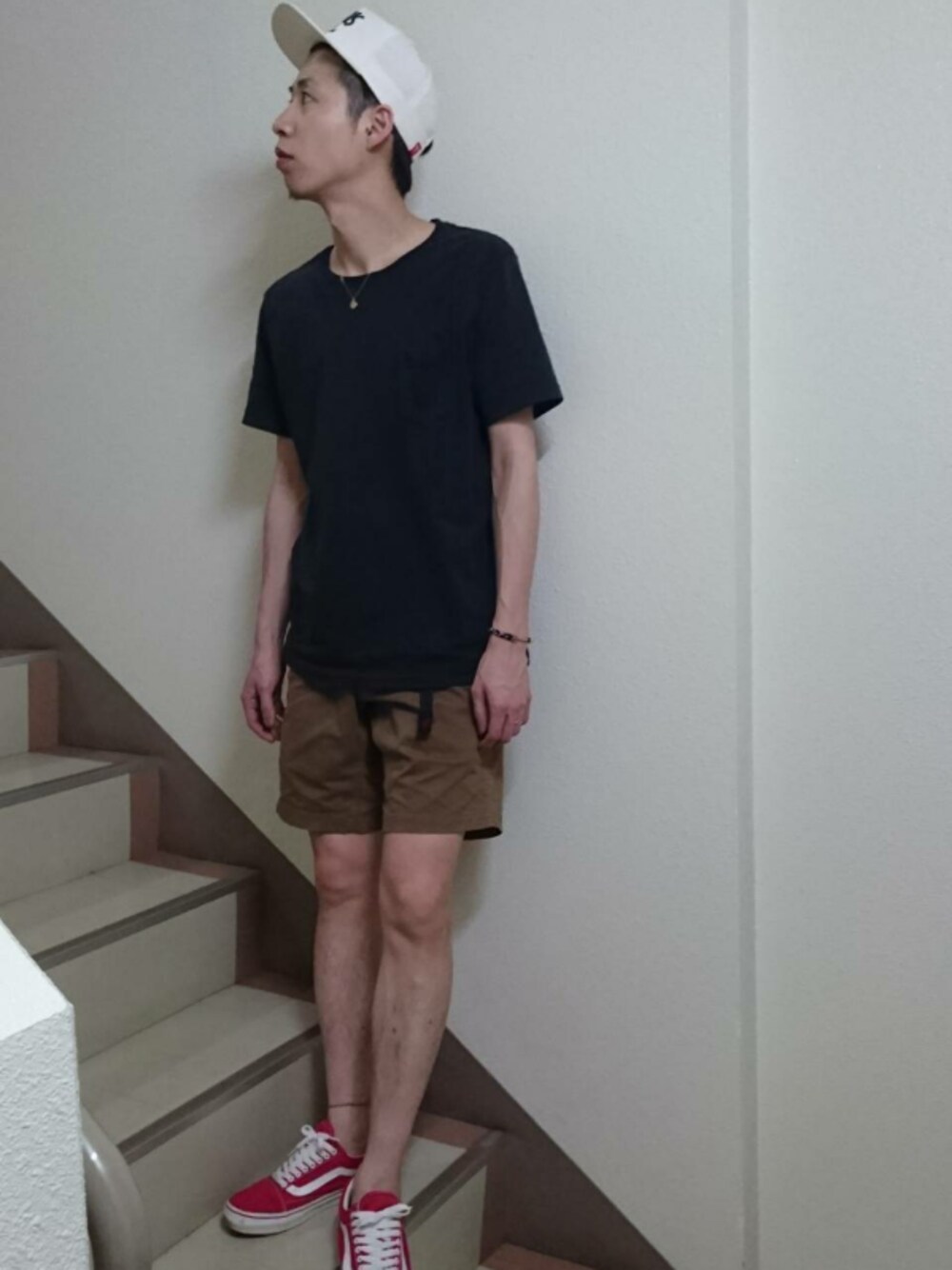 自分なりの、スケータースタイル🏂 トップスは、普段Lサイズは着ないけど、ちょっとゆったりな気分で購入☺ ワンウォッシュ加工で、ヴィンテージ風なのが気に入ってます😁 Gramicciのハーフパンツ初めて買ったけど、生地がしっかりしてて履きやすい✨ 色違いで欲しくなります😂
