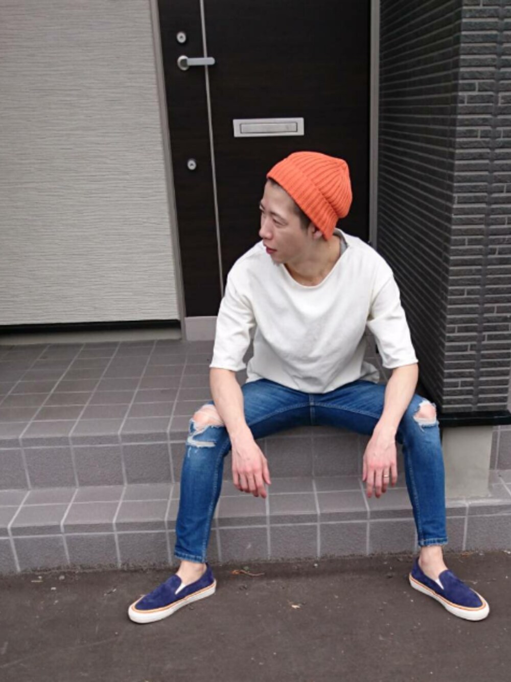 着まわしコーデ☀️ オレンジのニット帽使える❤️ ジメジメ暑いなー😱