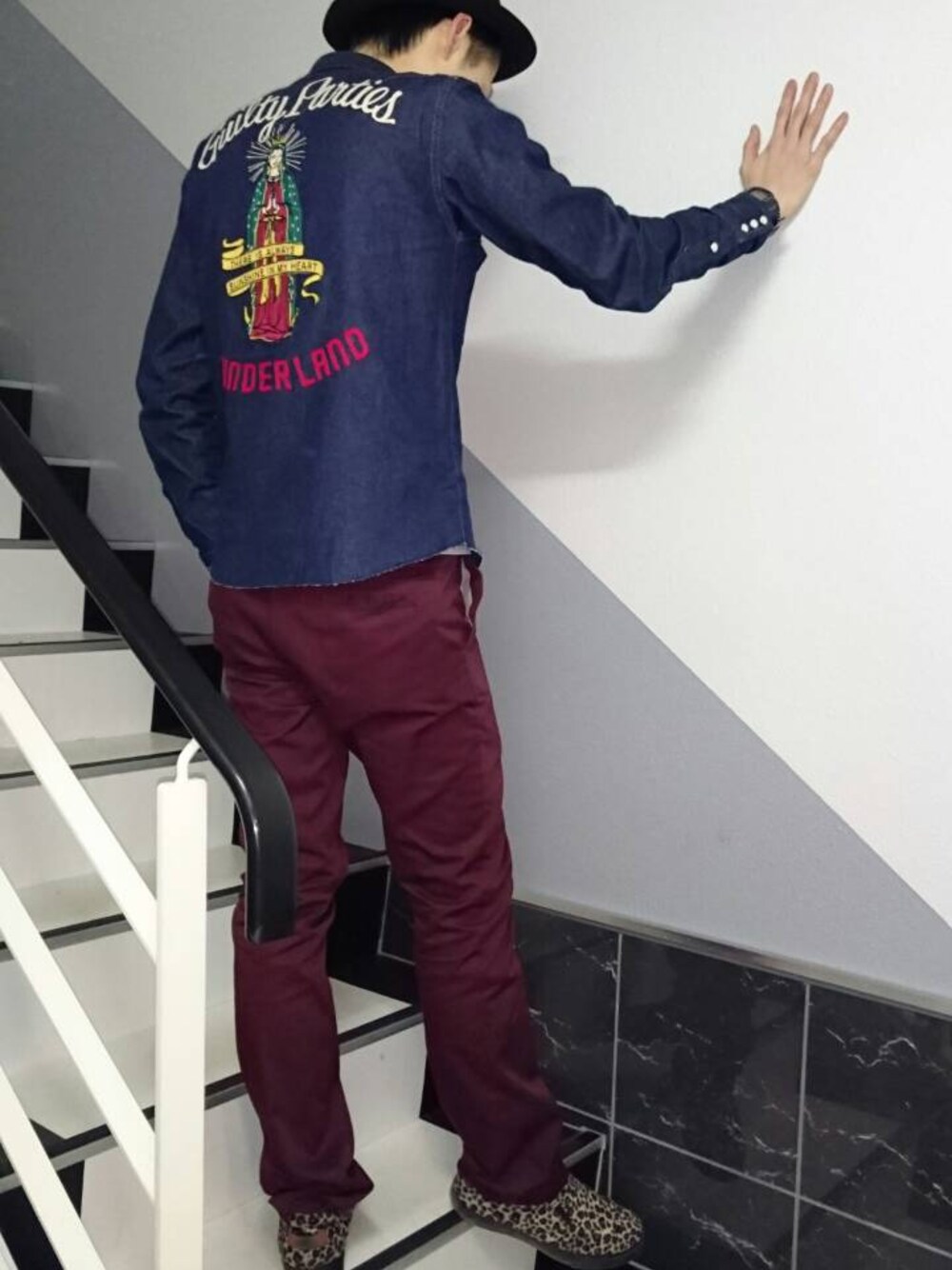 寒いです… 壁ドン❗ 相手が居ないのに壁ドン❗ ロンリー壁ドン❗です。 全身、wacko mariaで❗