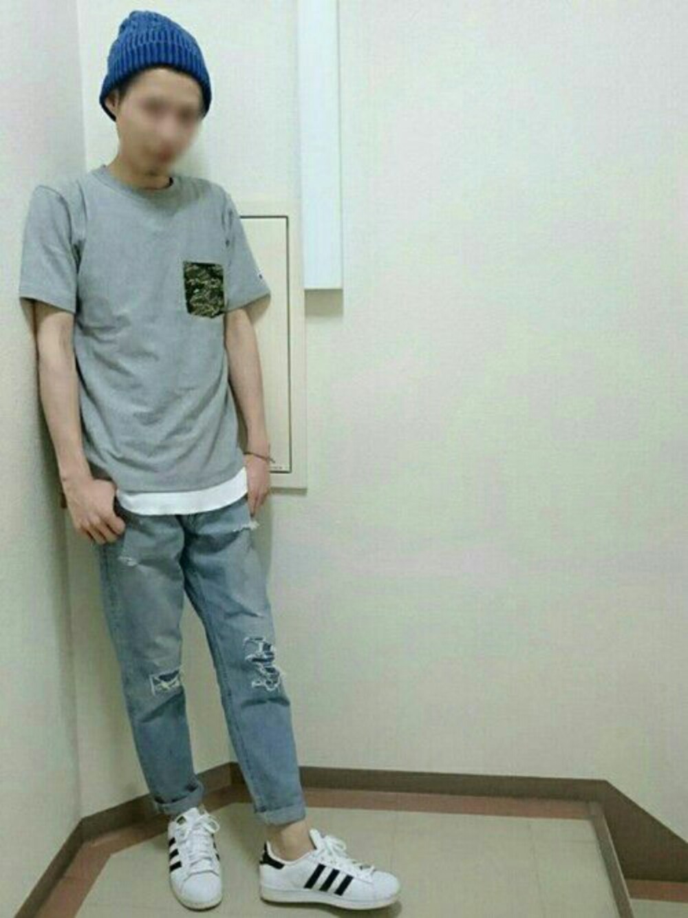 キャップと、パンツのデニデニ✨ championのTシャツは肉厚でしっかりしてて着やすい🎵