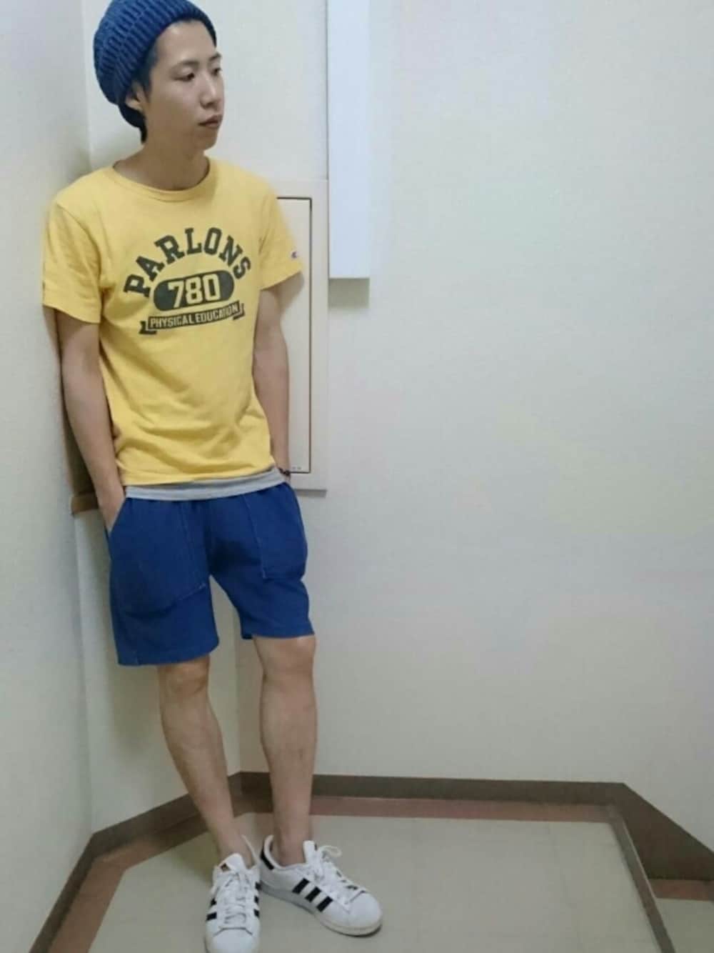 Y.A.a.m.のその他パンツ「 【別注】【セットアップ対応】Champion REVERSE WEAVEインディゴショートパンツ」を使ったコーディネート