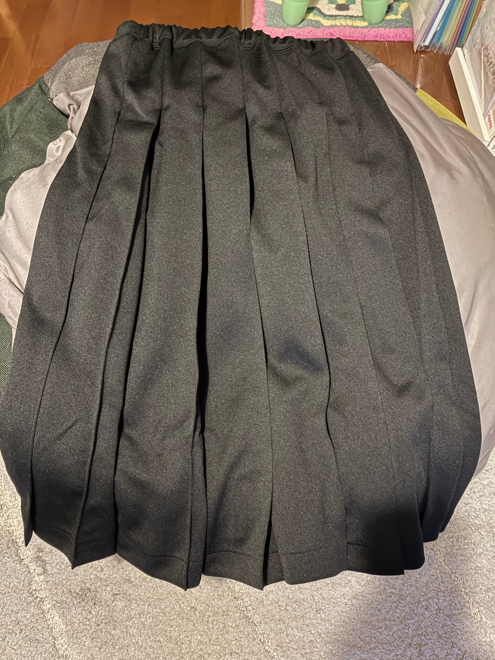 で、こちらが同じくコムデギャルソンの定番プリーツスカート✨ トラックジャケットとのセットアップで購入。 定番ものはいつでも買えるって思ってたら、色やサイズ、なんなら商品自体がなかったり完売してたり💦 やはり思い立ったら買っとかないと。 すでに大活躍してくれてます。 丈出したかったのでサイズはLにしました、はい。