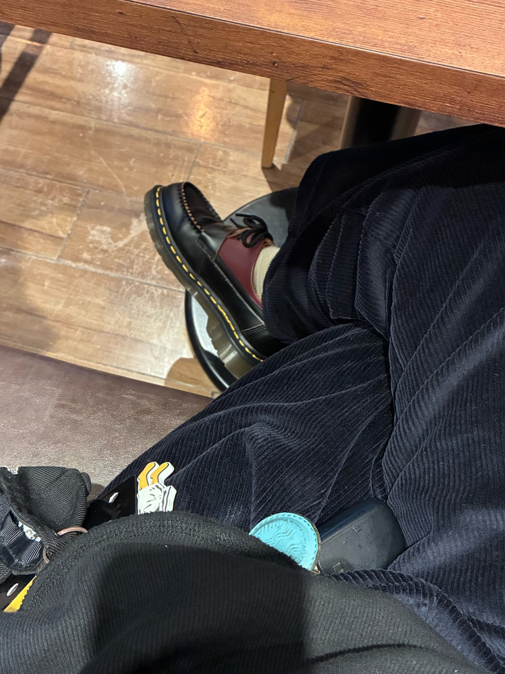 ここ最近はコーデュロイが好き❤️ このUNIQLOとCOMPTOIR DEIS COTONNIERSのネイビーカラーのカーブパンツ大活躍! 普段ネイビーは苦手な色味なんだけども、コレは色も深くてなんか合わせやすい☺️ 足元も気持ち真面目な感じで?