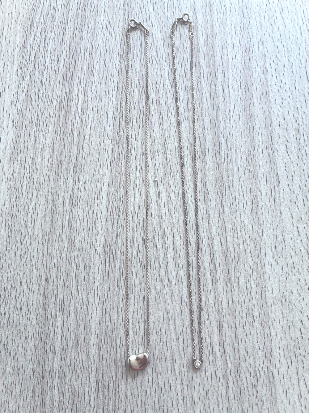 old tiffany探してて、このビーンネックレスを購入。 今更ながらの定番。 ほんとはもう少し古い物買うつもりだったけれども、間違ってこっちになってしまった💦 まぉ、状態も良い物だったので良しとしよう😊 そしてby the yardのシルバー× ダイヤモンドのネックレス✨ 実はこれ3代目💦 今度は手放さない様にしよう。。。🙏