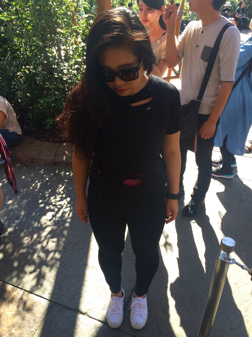 ユニクロのパックTを ハサミとカッターで切り刻んだ😎🤘 ボトムはカットオフジーンズ🙆 今日のドレスコードは黒💀💚 ホラーナイト心臓止まるかもだけど がんばろ🙄🤘🖖