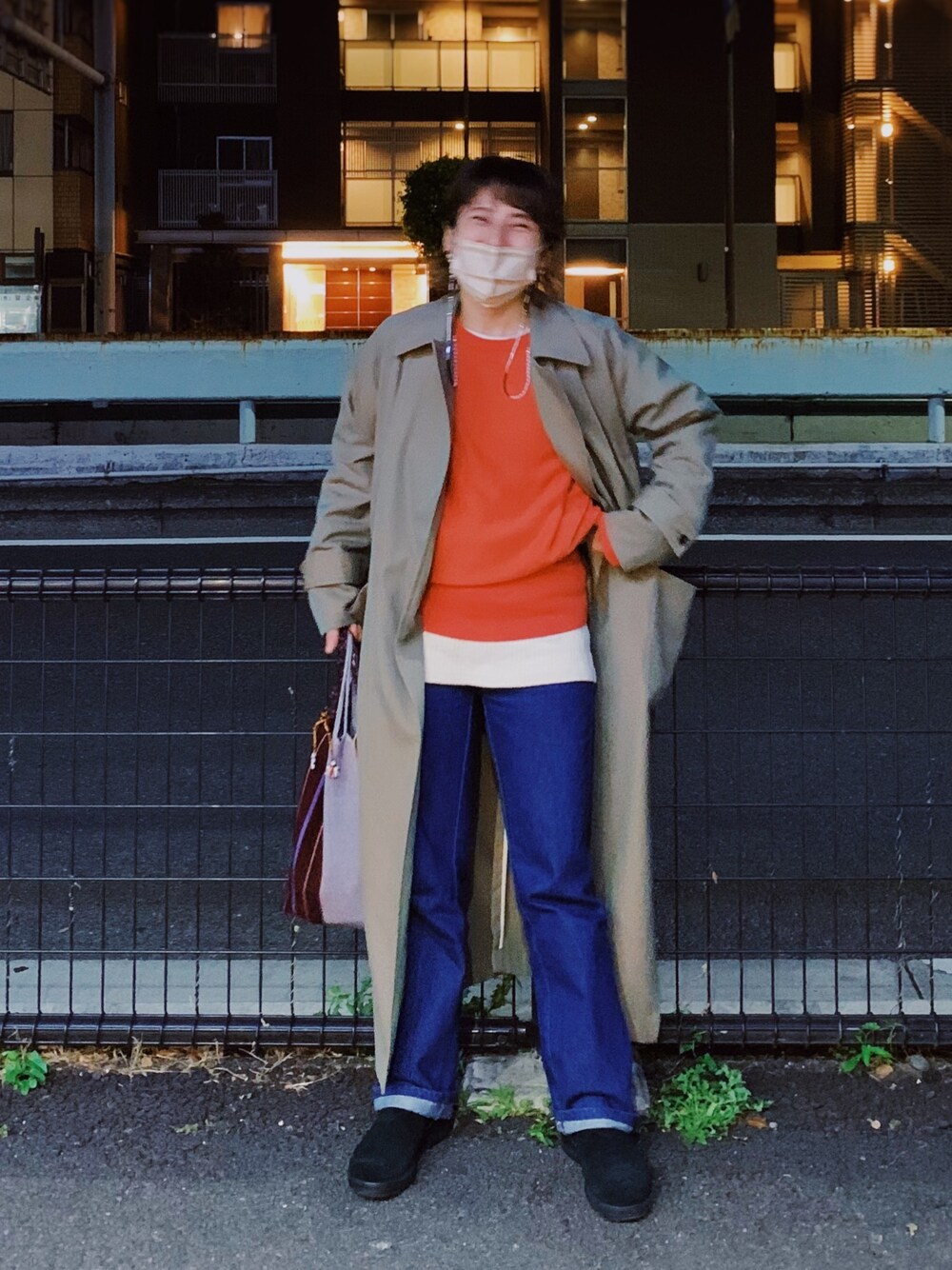 春のトレンチ スウェットとデニムのベーシックスタイル Instagram @gunjian