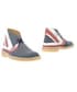 お揃いシリーズ。 ブルーのシャツにデニムのハーフパンツ。 クラークスのピストルズコラボ?ユニオンジャック柄のキャンバスチャッカブーツ。 まだ春物がギリギリ着れて嬉しいです。