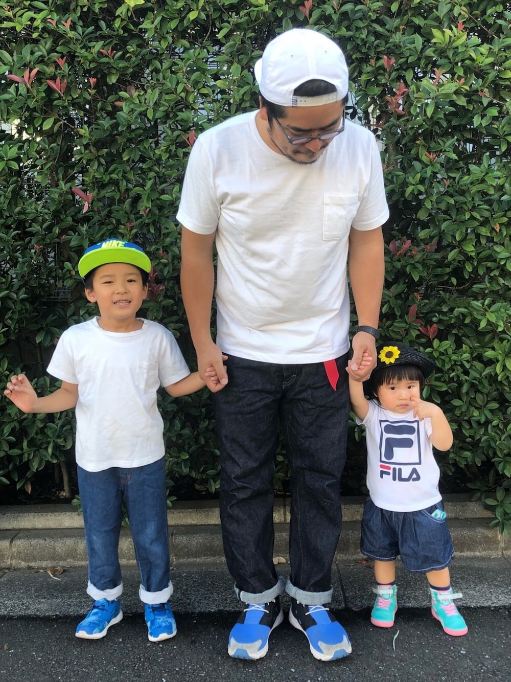 ベースボールキャップに、フューリーライトとスポーツ的な感じかなと、キャンペーンに乗っかります。 あとは白ティーにジーパン。 娘も白ティーにジーパンでアナ雪のフリースタイル。 また夏ぶり返しで秋物着れない。
