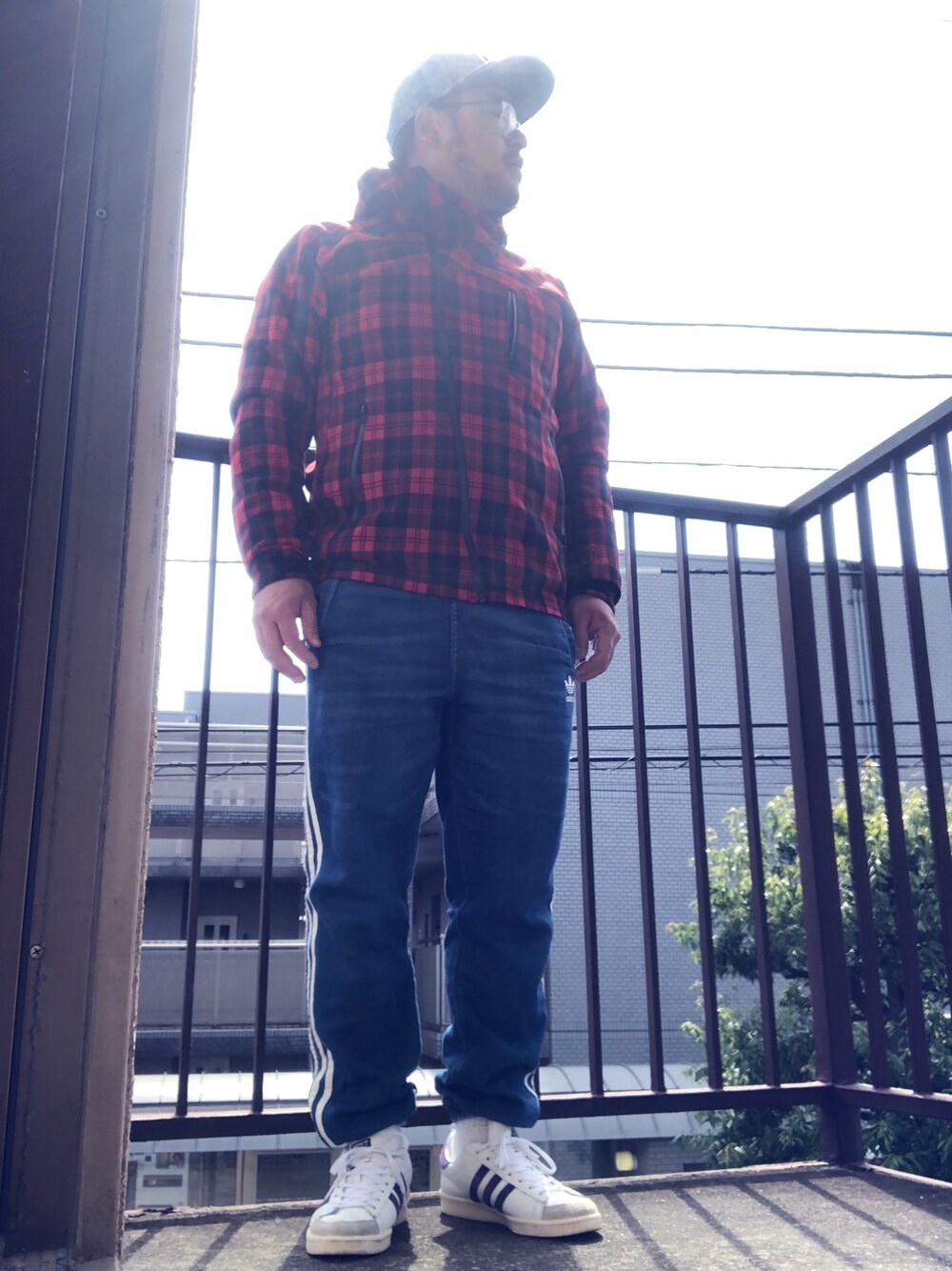 天気が良いですが、今日も風が冷たいです。 ニューエラのベースボールキャップ 、 イサオラのダウンジャケット、 アディダスのデニムスウェット、 アディダスの84labのスニーカー。