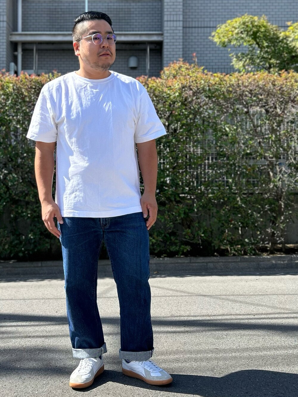 キャンバーのTシャツ、 シュガーケーンのジーパン、 プーマのアーミートレーナー。