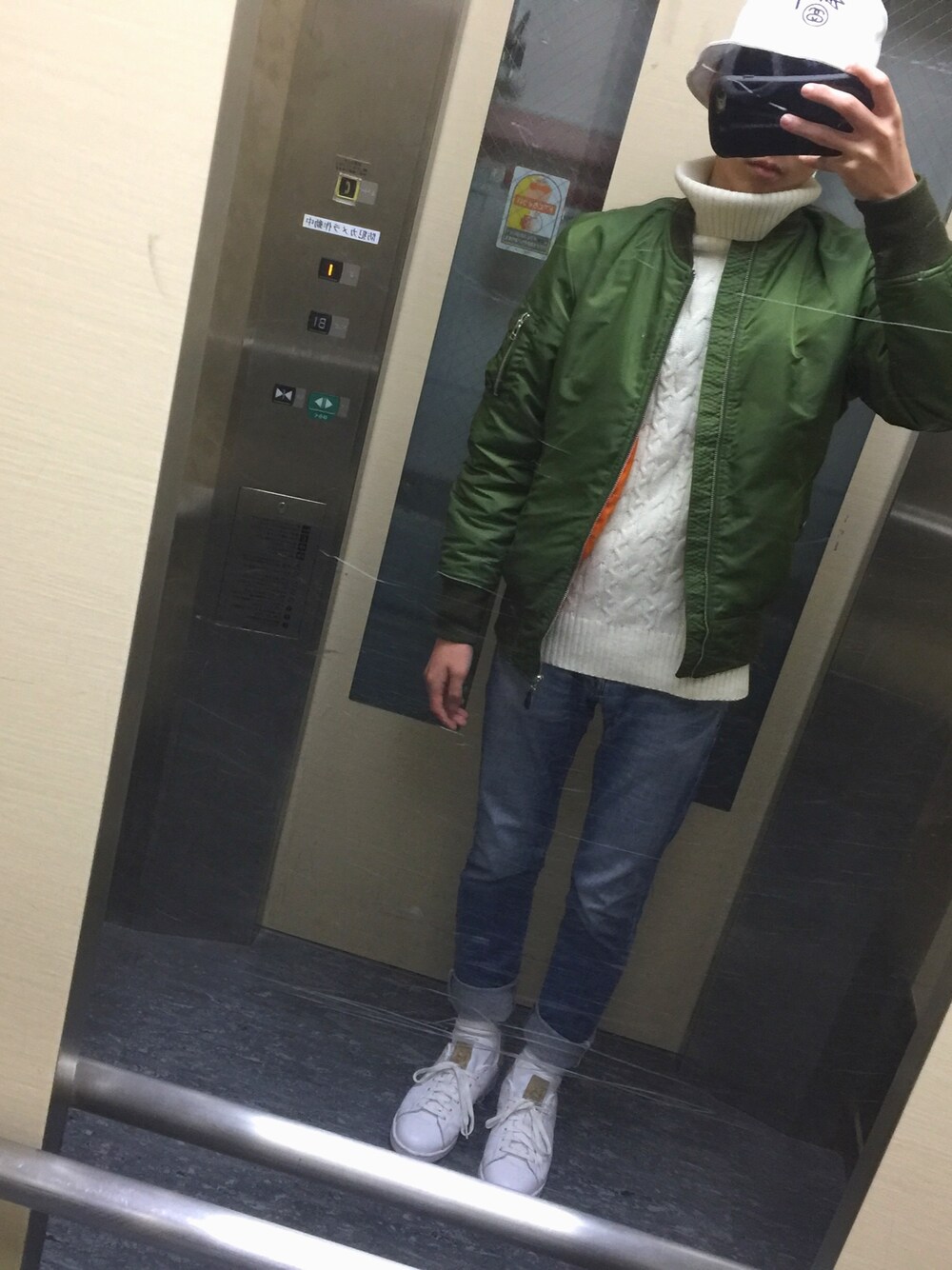 先日の出先での一枚🤳 最近MAー1に何かを合わせるのにハマっている僕はタートルネックの白と合わせてみました! そして色は3色までを意識して😀 ステューシーのバケットをかぶって 大人コーデを成立させてみました よければフォロローしてみてください