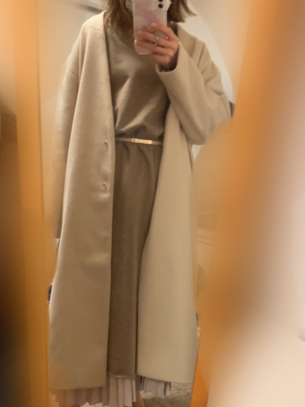 見て頂きありがとうございます♡ さらにベージュコートコーデ♡ ベージュ・モカでワントーンに♡ちびだけどロング丈大好きです♡