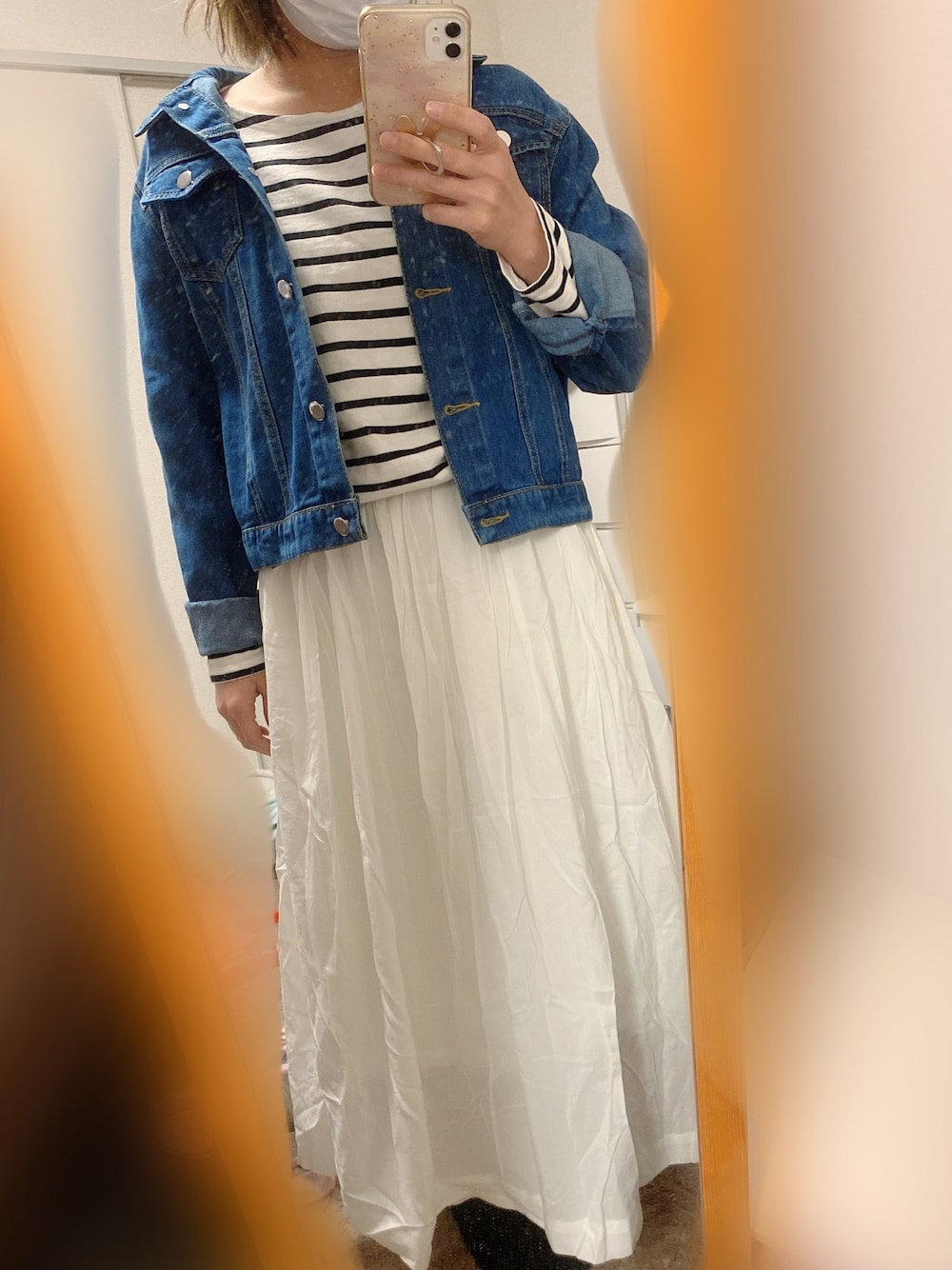 連投失礼します! 見て頂きありがとうございます♡ 昨日のコーデ!昨日は帰りが寒そうだったので、Gジャンでお仕事行きました〜!偶然にも職場の友達もロンスカだったw 春の定番スタイルだけど、久々に着ると好きだな〜♡