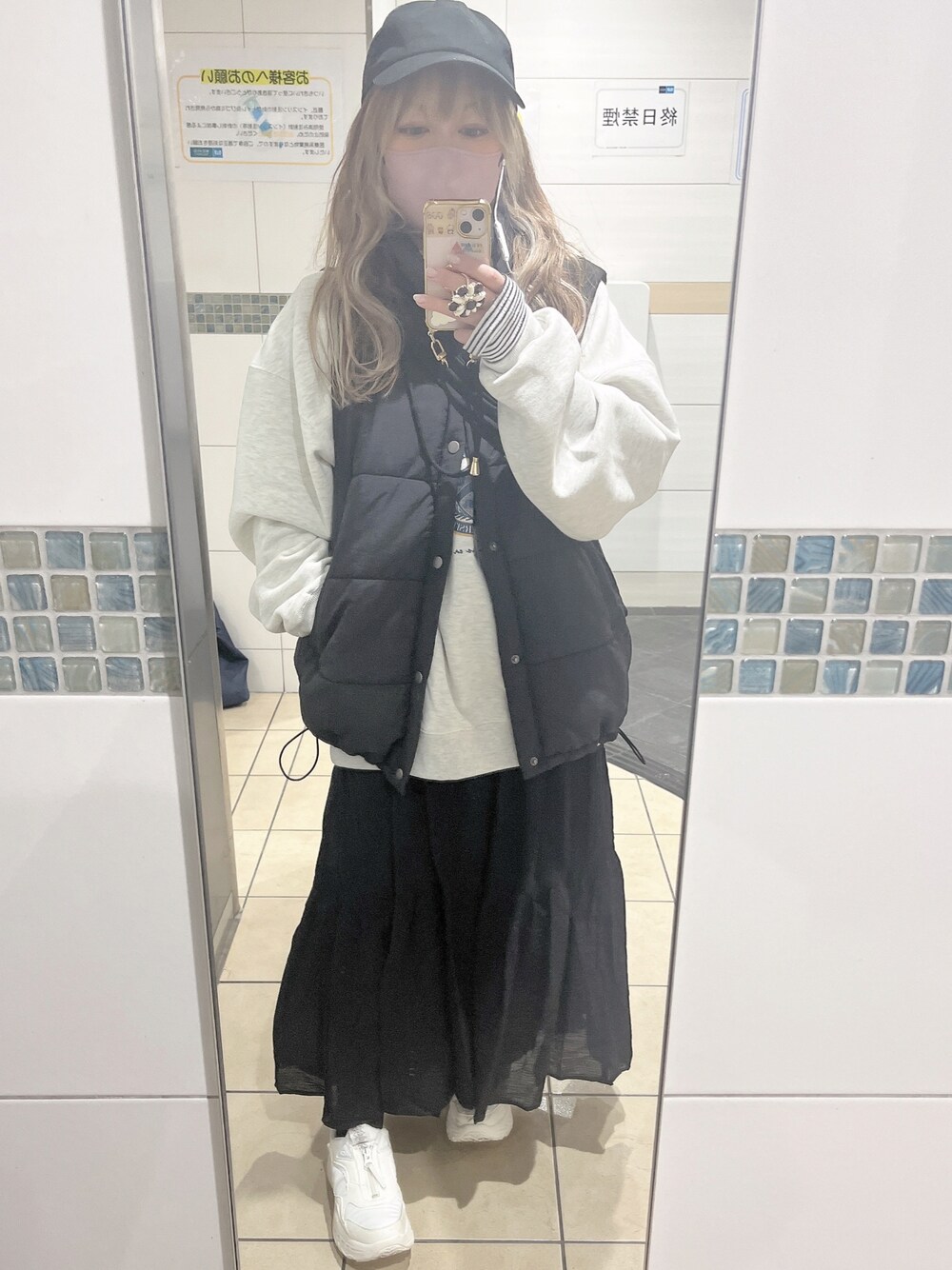 おはようございます! 今日はぽかぼか陽気なようなので、ダウンベストで♡ カジュアルなのでフレアスカートにしました😊
