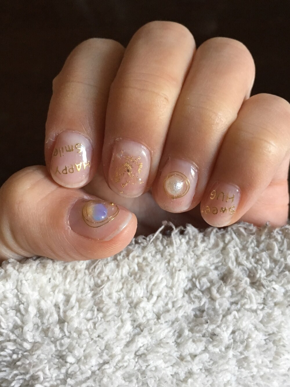 見てくださってありがとうございます♡ 今のネイル♡ セルフジェルです。 今回はクリ×ゴールドでシンプルめに。 ワイヤーと金箔にハマってて毎回やっちゃう♡