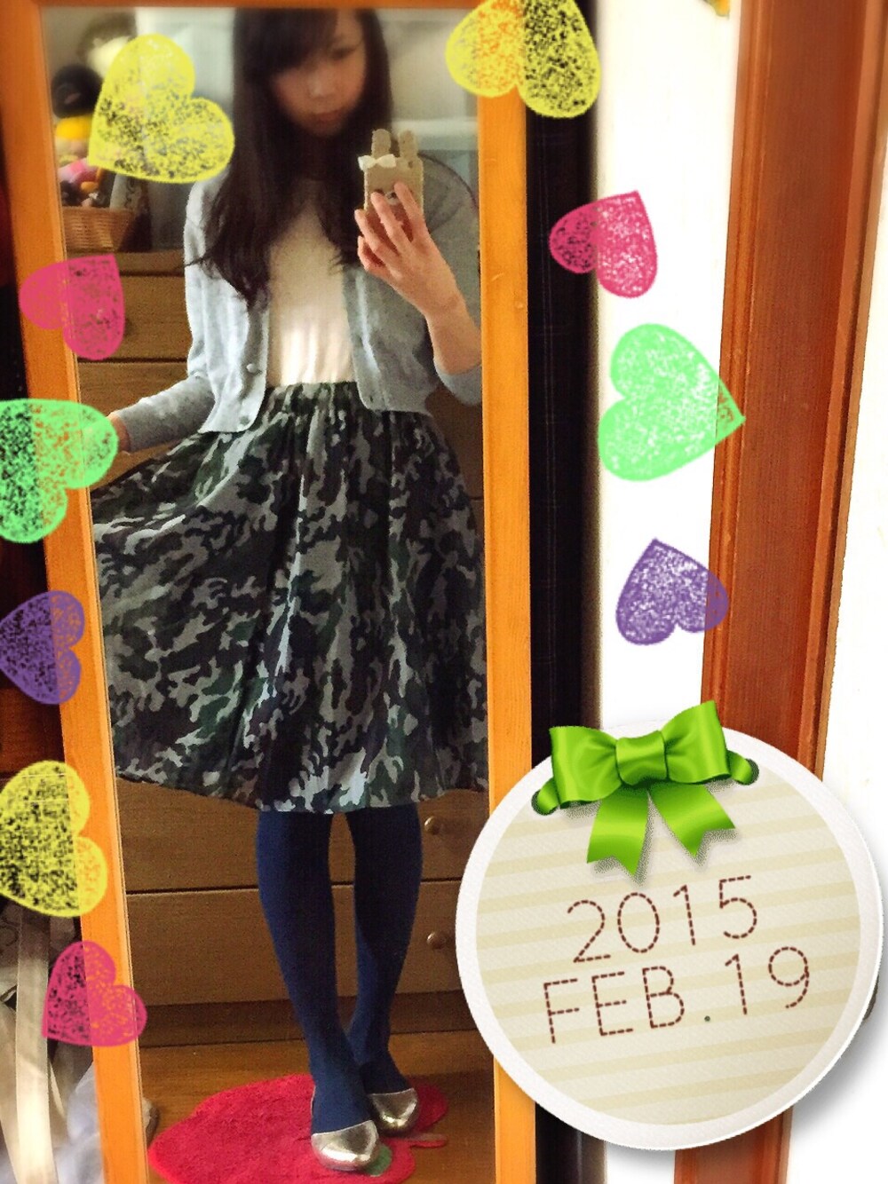 昨日のコーデです。 名古屋で飲み会(*´∀`) カモフラ柄のスカートが可愛くて自然と気分もウキウキ♪ でも終電逃し→津新町で降ろされる私(´・_・`) 何とか帰ってこれたが次回は気をつけなければ…。 ウサギさんのスマホカバーは手作りでお気に入り♡ また色違い作ろう(*・∀・)