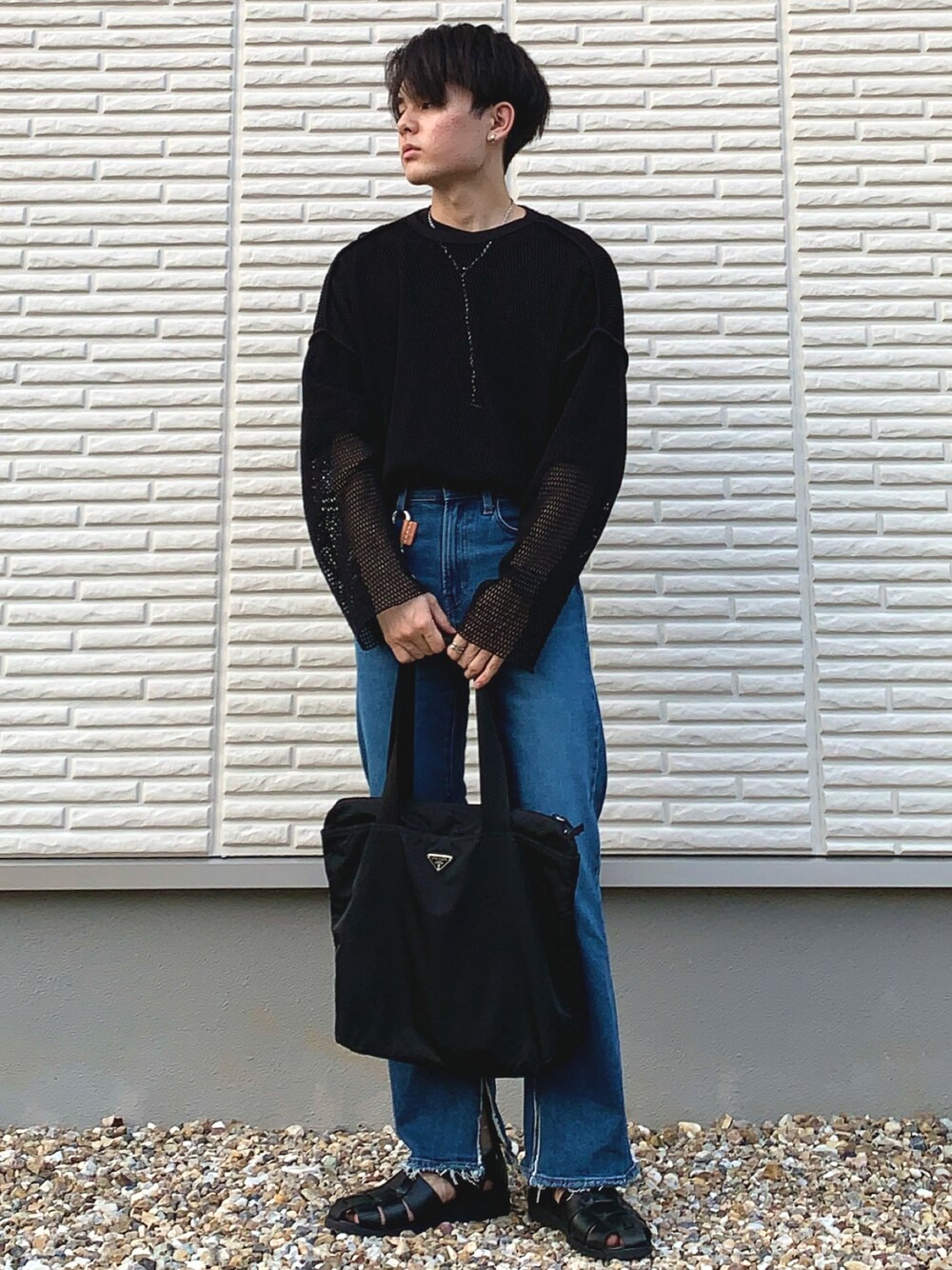 ご覧いただきありがとうございます☺️ メッシュのトップスは同系色のインナーを合わせてあげるとメッシュが強調されすぎずメンズでも取り入れやすいかなと思います🧐