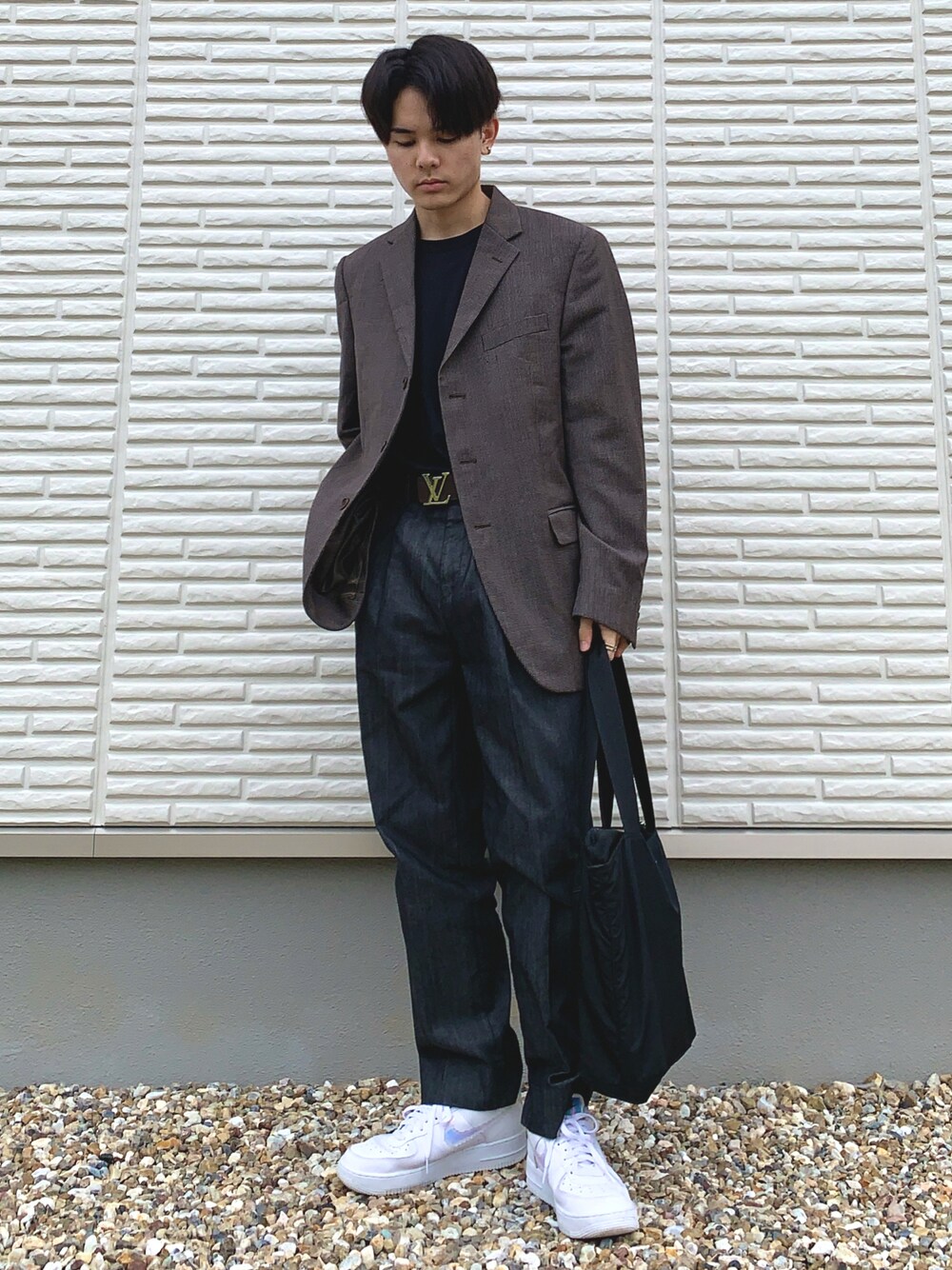 ご覧いただきありがとうございます。 全体的に重い配色でもスニーカーで白を差すだけで軽やかな印象になります。