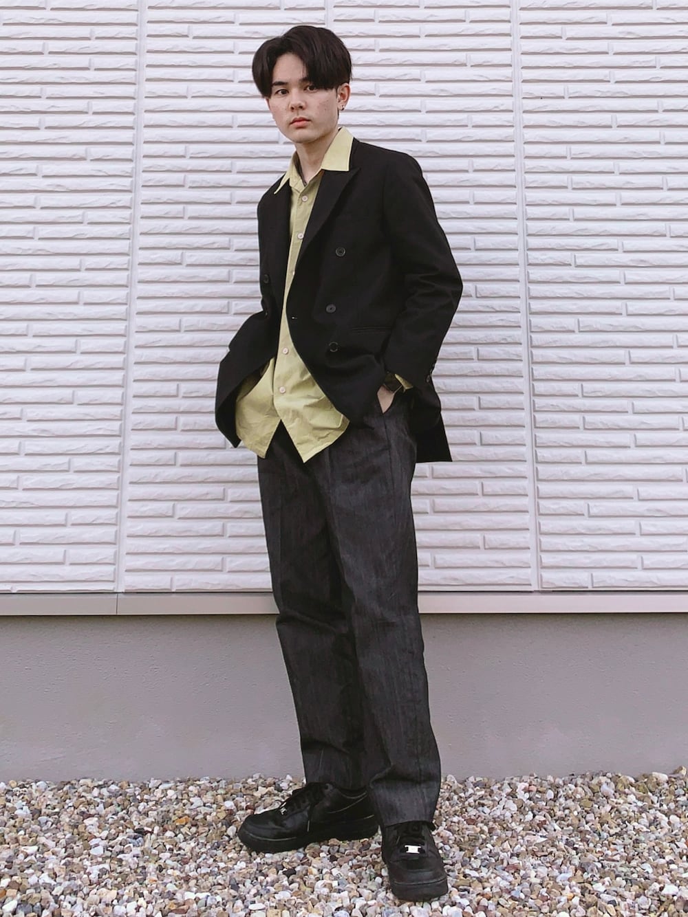 ぐりのテーラードジャケット「<monkey time> TW TWILL DOUBLE BREASTED JACKET blk/ジャケット」を使ったコーディネート