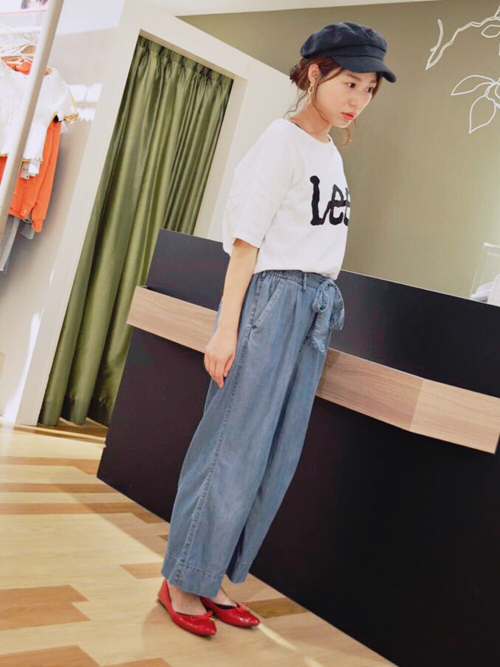 LeeコラボT、着回し力バツグンです 今日はマリンテイストにまとめました 接触冷感デニムパンツ、触れると本当にひんやりと心地よい♡ 暑くても快適に過ごせるデニムです 薄手なので、雨にぬれても、お洗濯後も、早く乾きます じめじめするこれからの季節にぴったり!