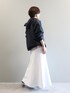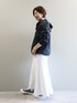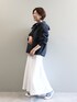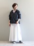 マルチボーダーのカットソーをアクセントにしたカジュアルコーデ。 アウターは裾のドロストを絞って、ふんわりとしたシルエットにしました。 スカートは素材はカジュアルですがシルエットがきれいなお気に入りアイテムです! ◆アウター 普段着用サイズ:M、Fサイズ 今回着用サイズ:Mサイズ 【着用感】 長袖カットソーの上からかなり余裕で羽織れました。 インナーがニットやスウェットでも問題なさそう。 【素材感】 軽くて着ていて楽です。 スポーティな素材ながら質感はマットで、普段のコーデに使いやすそうだと思いました。 撥水加工が施されているので、お天気が崩れそうな日に役立ちます。 ◆トップス 普段着用サイズ:M、Fサイズ 今回着用サイズ:Mサイズ 【着用感】 ゆるっと着られるサイズ感。 丈も少し長めです。 【素材感】 柔らかく肌触りのよいカットソー素材。 カラーのおかげか、透けは感じませんでした。 ◆スカート ※5月発売予定のアイテムです。 普段着用サイズ:M、Fサイズ 今回着用サイズ:Fサイズ 【着用感】 ウエストゴムなので楽なはき心地。 ウエストやお尻周りに余裕もあります。 【素材感】 柔らかく軽い素材。 フレンチテリーと呼ばれる素材です。 かなり薄手のスウェット、のようなイメージが近いかと思いました。