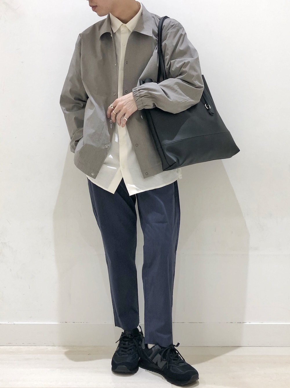 大人の休日スタイル 高見えし、かっちり見えするコーディネートですが、 リネンシャツやイージーパンツを用いることで、驚くほどのはき心地と軽さ! コーチジャケットも薄い素材で、この時期の羽織りとしてピッタリ◎