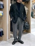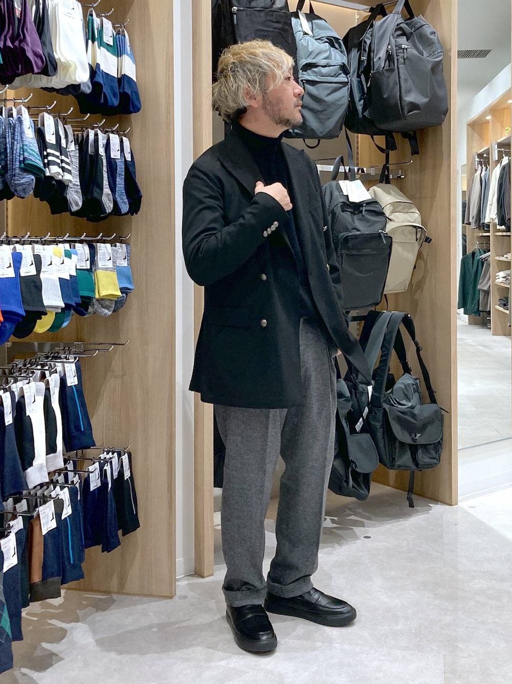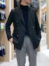 ▪️Wブレストブレザー/Salon de GW ピークドラペルのWブレストジャケット。肩パットの入っていないアンコン仕様のナチュラルショルダー。 フロント、フラップ周りにAMFステッチ(ハンドステッチ風)が入っています。裏地はオールシーズン対応の背抜き仕様。 スリムに見えて、動きやすいような作りで、袖や肩周りはイセ込みという技法で立体的に作られています 金ボタンがポイントになったアイテムです。 ▪️ウールブレンドパンツ/Salon de GW ウエストに1タック入ったスタンダードフィットのテーパードスラックスです。 ウエストはスピンドル(紐)とゴムのイージー仕様で、スピンドルは内側にも外側にも結べる2WAY仕様です。 裾はダブル、クリース(折り目)も入っており、総裏地付きでウール混でもチクチクしにくい仕様になっています。