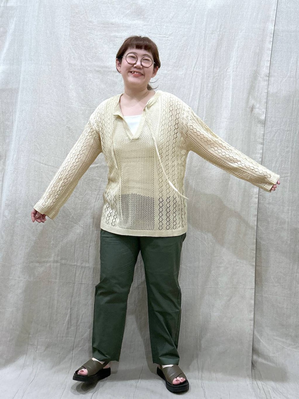 たけちゃん(GLOBAL WORK アリオ蘇我)のニット/セーター「2WAYキリカエメッシュPOLS 104765」を使ったコーディネート