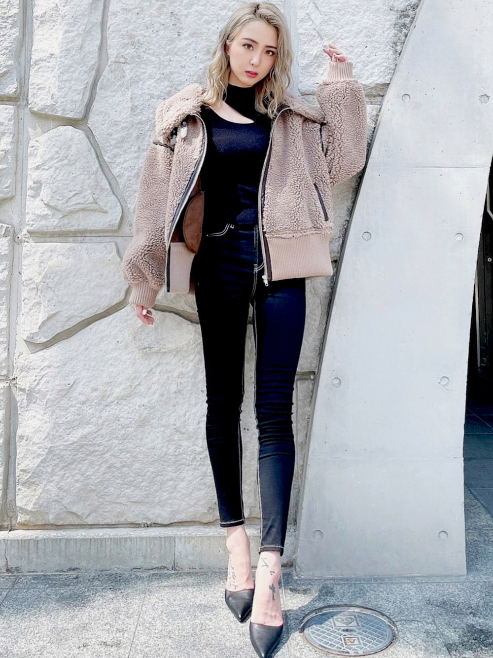 GYDA STAFFのブルゾン「WIDE RIB ボア B-3 ジャケット」を使ったコーディネート