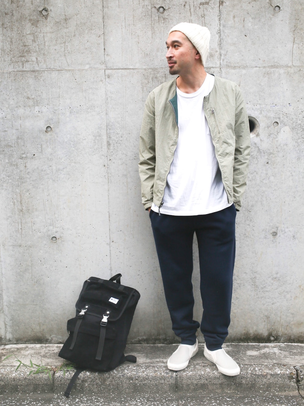 INOUE(gym master)(gym master)のノーカラージャケット「リバーシブルナイロン ノーカラージャケット」を使ったコーディネート