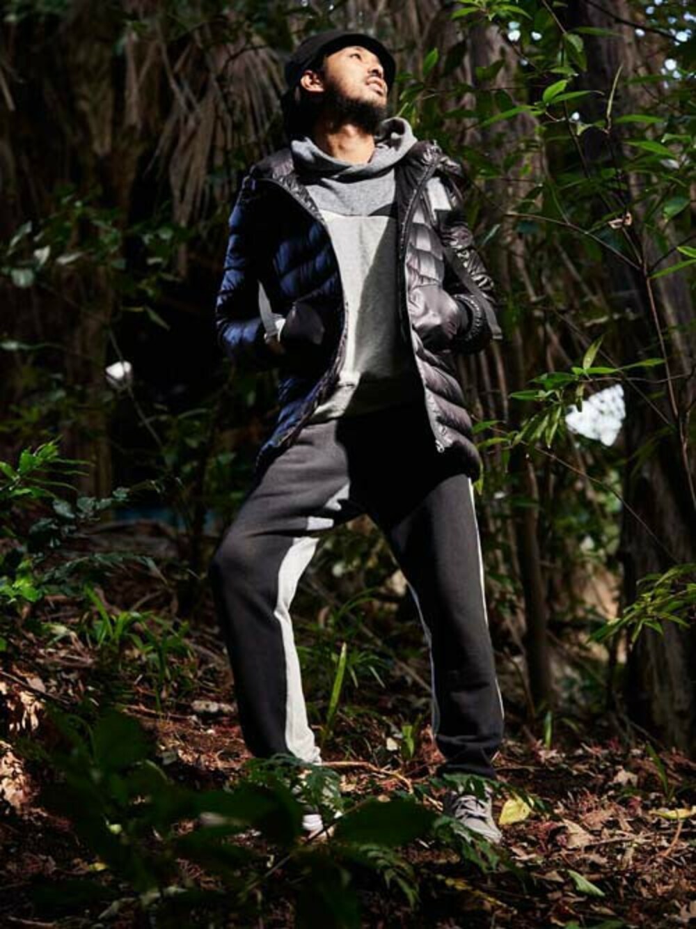 軽い、薄い、暖かい、一度着ると、手放せなくなること必至のダウン! パーカーとパンツは、カジュアルになり過ぎないシックなモノトーンのマルチカラーデザイン。