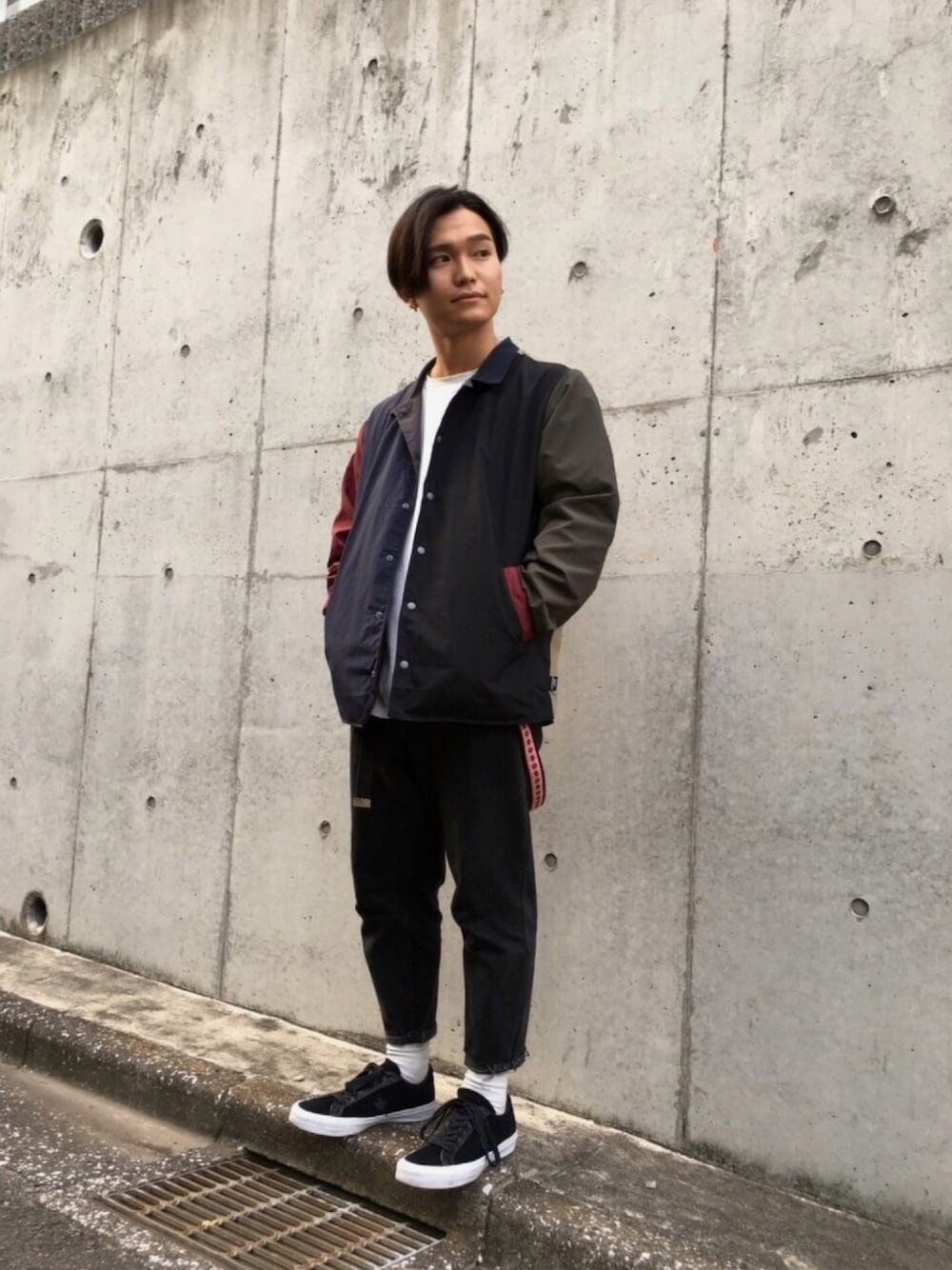 YOSHI(gym master)のナイロンジャケット「RVナイロンスナップボタン コーチJKT」を使ったコーディネート