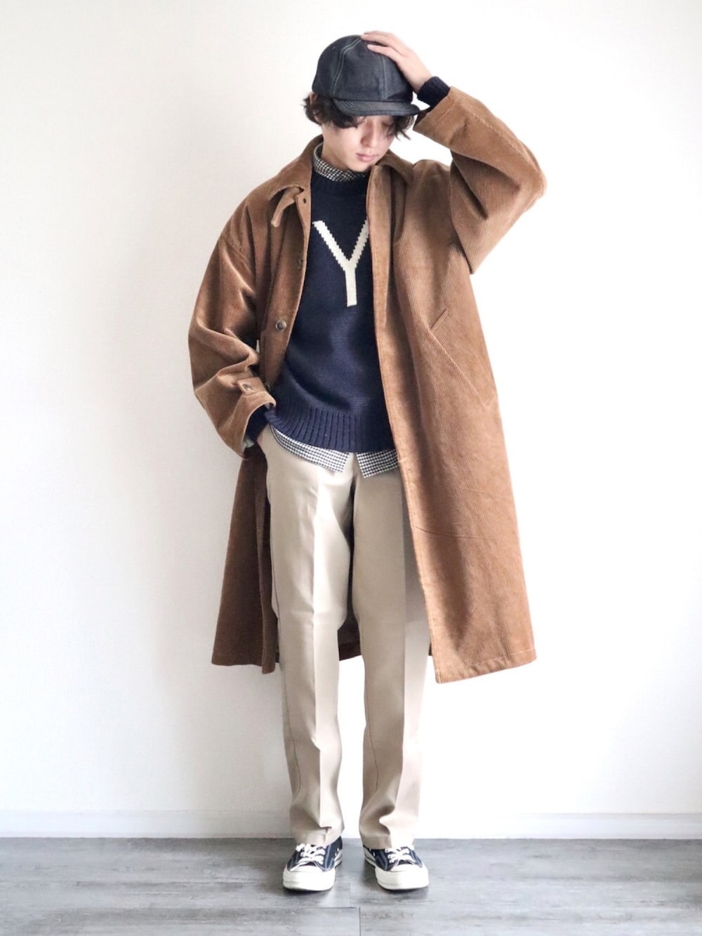 Gのステンカラーコート「WEB限定 ビッグシルエット コーデュロイ バルマカーンコート/オーバーコート」を使ったコーディネート