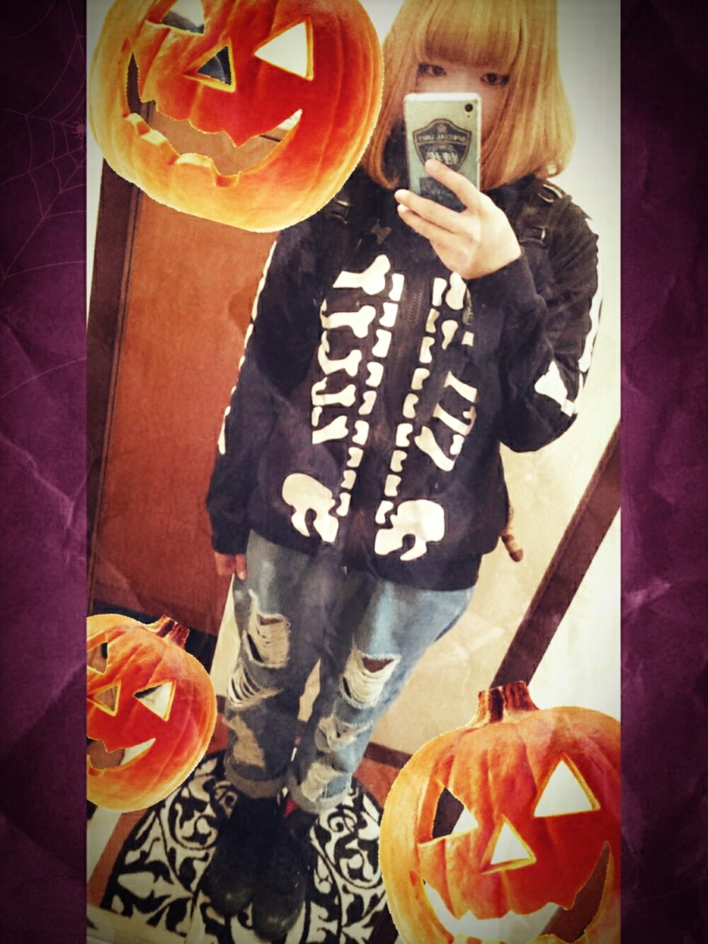 BOTTOMS…USED SOCKS…tutuanna SHOES…CONVERSE これからお昼休みに プチハロウィンお菓子パーティー するから骸骨パーカー着た💀💣 単純小僧です。 💀🎃🎃Happy Halloween🎃🎃💀