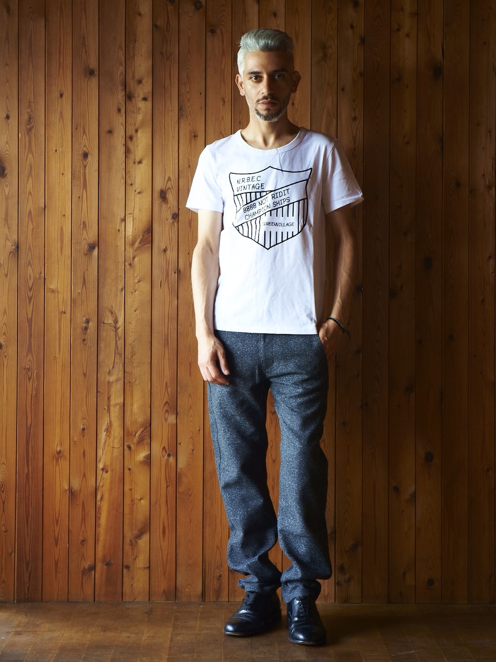 NOT RIGIDのプリントTeeでコーディネート! カレッジプリントなので、パンツは何にでも合うアイテムですね!