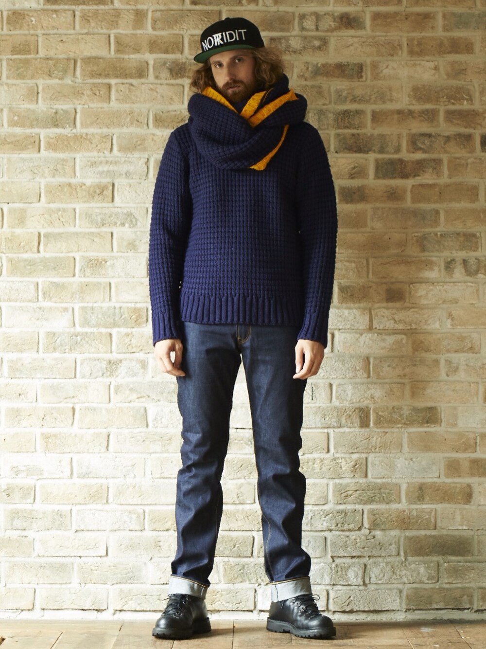 ニット:NOT RIGID・LINKS BONE KNIT スヌード:NOT RIGID・LINKS BONE SNOOD パンツ:NOT RIGID・VIRGINIA シューズ:Danner