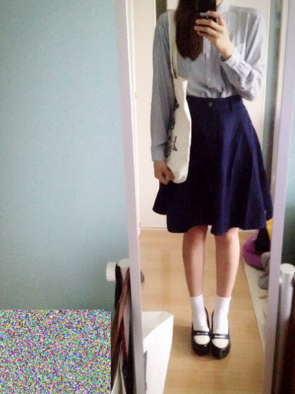 シャツは一応、ストライプになっています(^。^) 着やすくて気に入ってます!今日は全体的に青で爽やかにしてみました(笑)