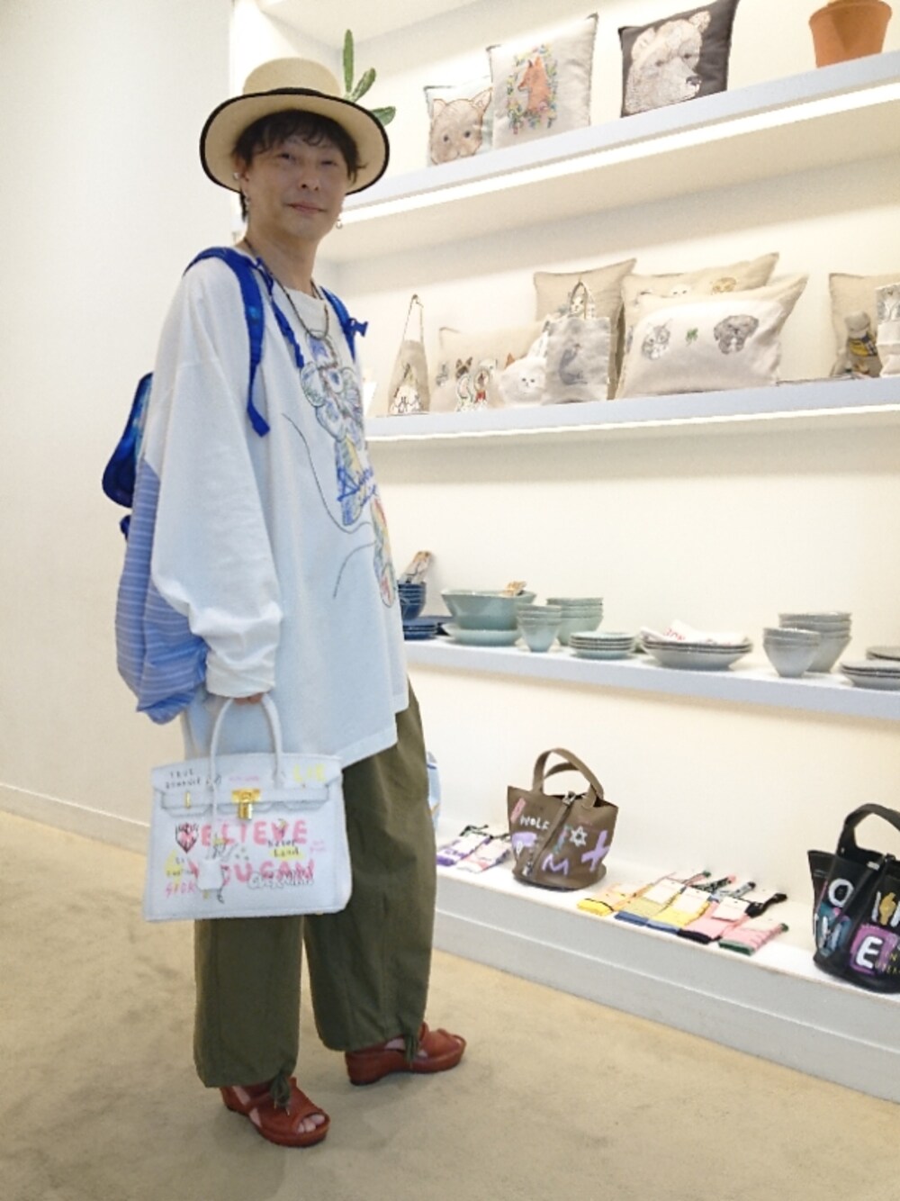 ゲルニカのバッグを買ったときの写真です‼️ だから、リュックも背負ってます!(^^; 東急プラザ銀座です。