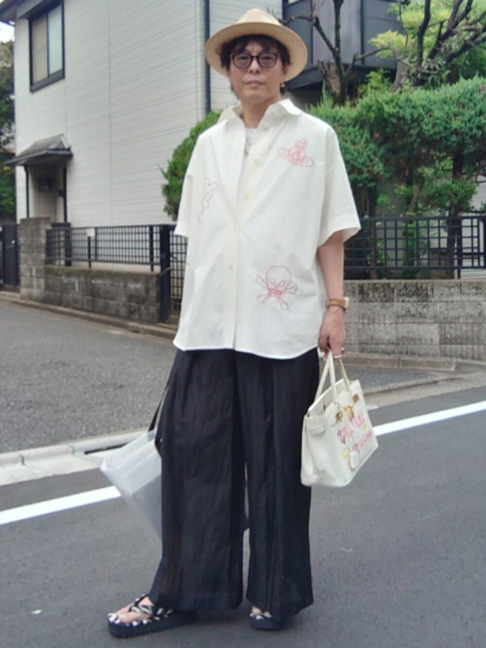 麻のパンツに草履が中々気に入ってます! クラシックなパナマ帽も被って クラシックと現代の融合がテーマ 麻のワイドパンツと厚底草履で 浴衣的なイメージを出したかったんです!! 今日は、青山、表参道あたりへ VivienneWestwood MaisonSpecial へ また、買ってしまった…😂 メゾンスペシャルの店舗へは初訪問。 昨日でた限定のシャツをゲット!
