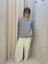 大人の余裕は、 無理せず“ちょうどいい”バランスから。 ネイビーのショート丈コート×グレーニット×オフホワイトのパンツ。 全体を“やわらか×締め色”でまとめた冬の王道バランスです。 小柄さんの場合、ショート丈のコートがバランスの要。 長すぎない着丈で脚長効果が出るうえ、ワイドパンツとの重心がきれいに整います。 また、インナーを明るめのグレーにすることで、顔まわりに軽さが出て暗く沈みません。 足元はつま先の見えるパンプスで抜けをつくるのがポイント。 「冬でも軽さを意識する」ことで、ぐっと洗練された印象に。