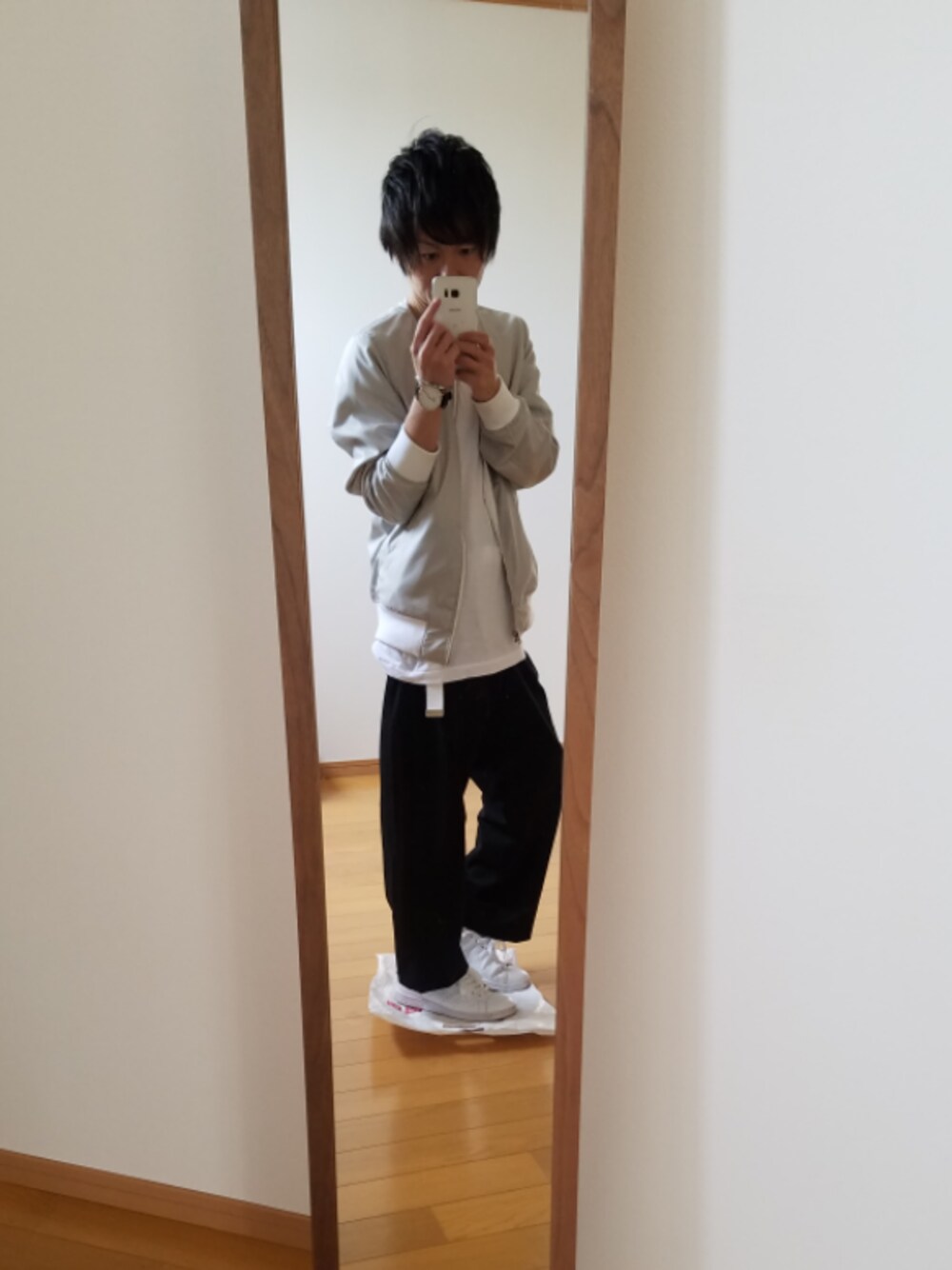 山形県からこんばんわ★ 今日はあっつすぎでしたにゃ(^-^; ノーカラーMA-1×ワイドパンツ×スニーカー シンプルモノトーンコーデ この度もコーデ見ていただき、ありがと様でした(*^^*)