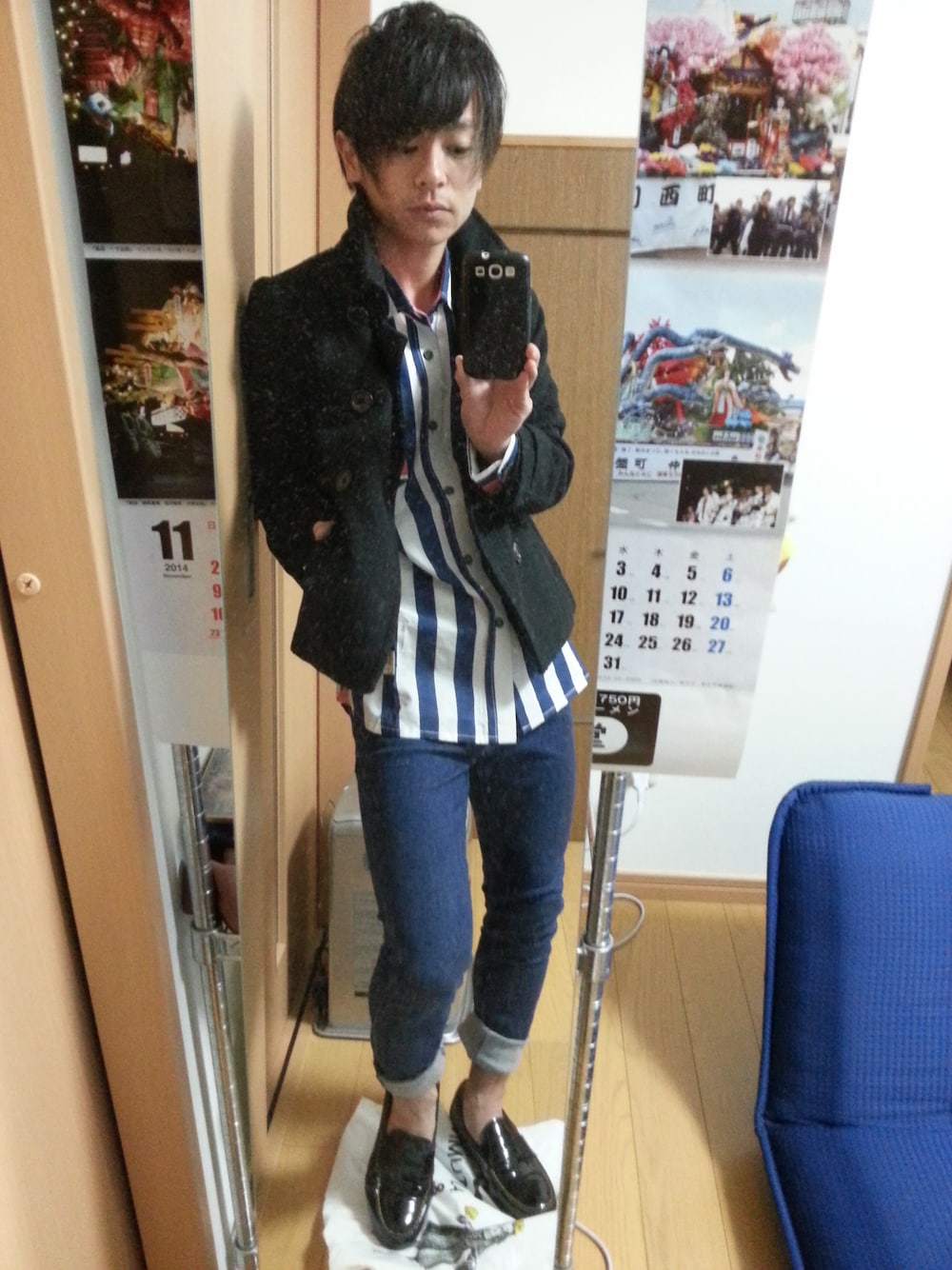 こんばんわ~♪ すっかり寒くなりましたにゃ~Ψ( ̄∇ ̄)Ψ Today's コーデは、 爽やかなローソンシャツ(笑)に ショート丈Pコートを合わせて、ちょっと冬を感じる 組み合わせ☆ 足元はローファーで上品さプラス☆ これから、結婚式の余興の打合せ~野郎呑みダァーー