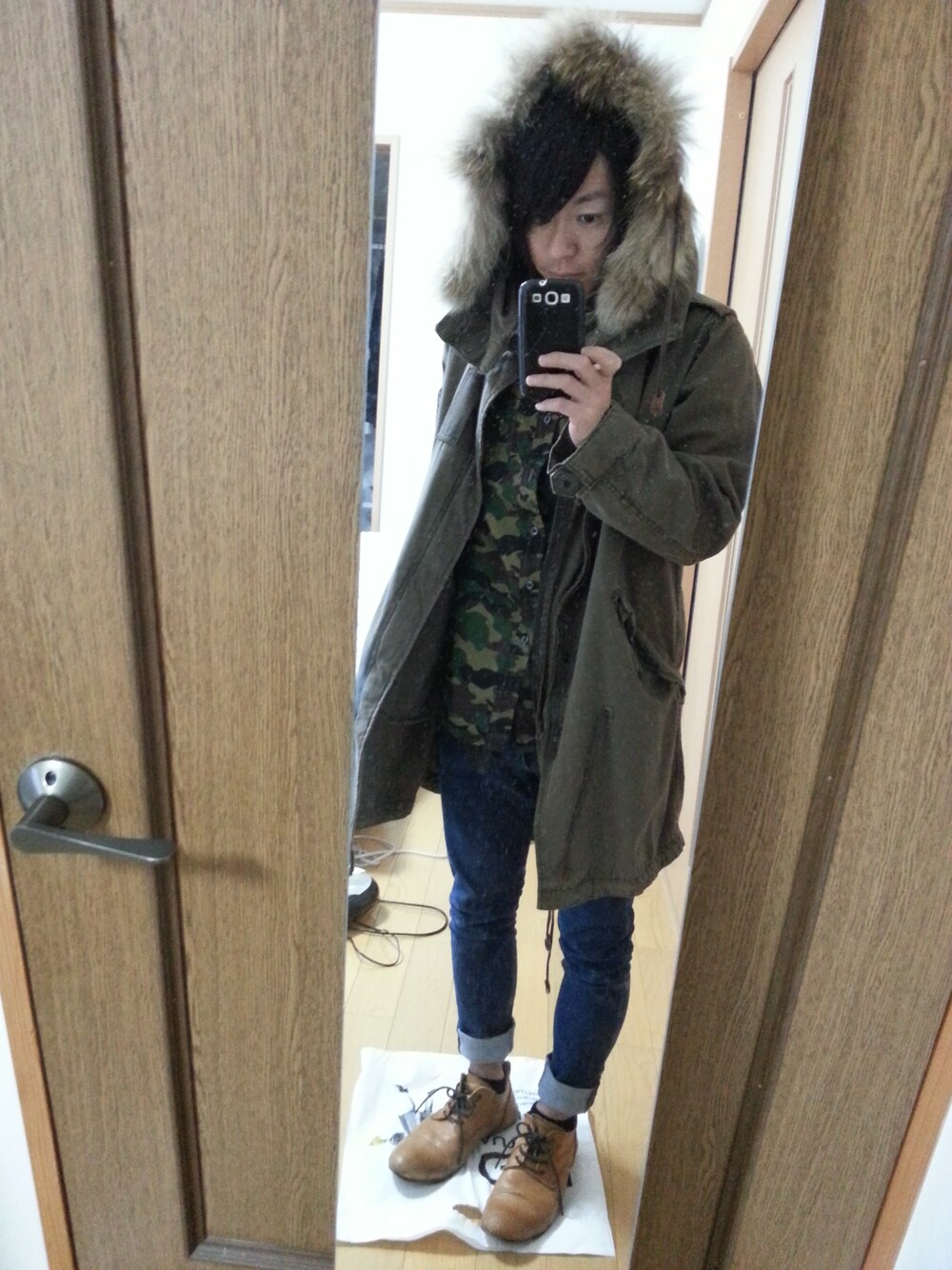 明けましておめでとうございます☆ 今年も、週末は出来るだけコーデアップして、 皆様の着こなしを参考に、お洒落を勉強していきたいと思いますぅ~(*^^*) 宜しくどーぞ! いやー、正月から行き積もりすぎ…(;o;) そして、 年末から怒濤の飲み会ラッシュで、 暴飲暴食で、お肉プクプクちゃんです(笑) コーデは、THEモッズコートコーデ☆ 防寒を意識しつつも、 足下くらいは上品にしたつもりです。 インナーシャツのカモフラ柄は、あえてモッズコートのグリーンとかぶせてみました(笑) さぁ、今日もこれから飲み会レディゴ~♪ 皆様も、 充実の正月を~(*^^*)