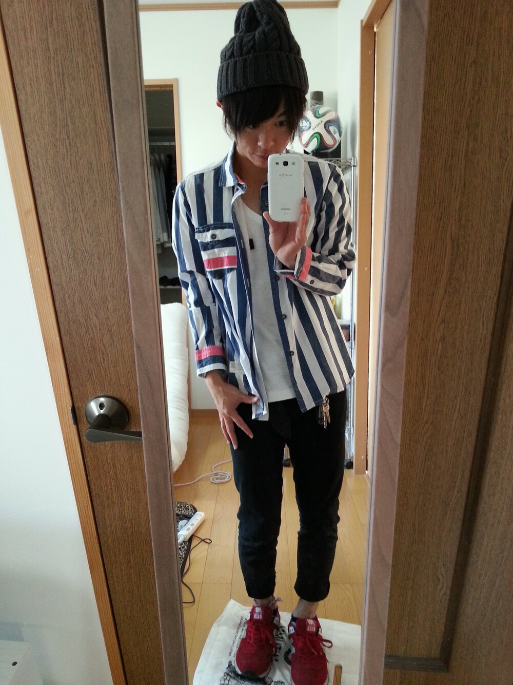 一昨日のコーデ★ 主役はストライプシャツ♪ 上半身ハデなので、パンツは黒スキニーで締める感じです。 で、でも、靴のチョイスは間違えたみたいです-w まとまりのないコーデになってしまいますた(/_;)/~~