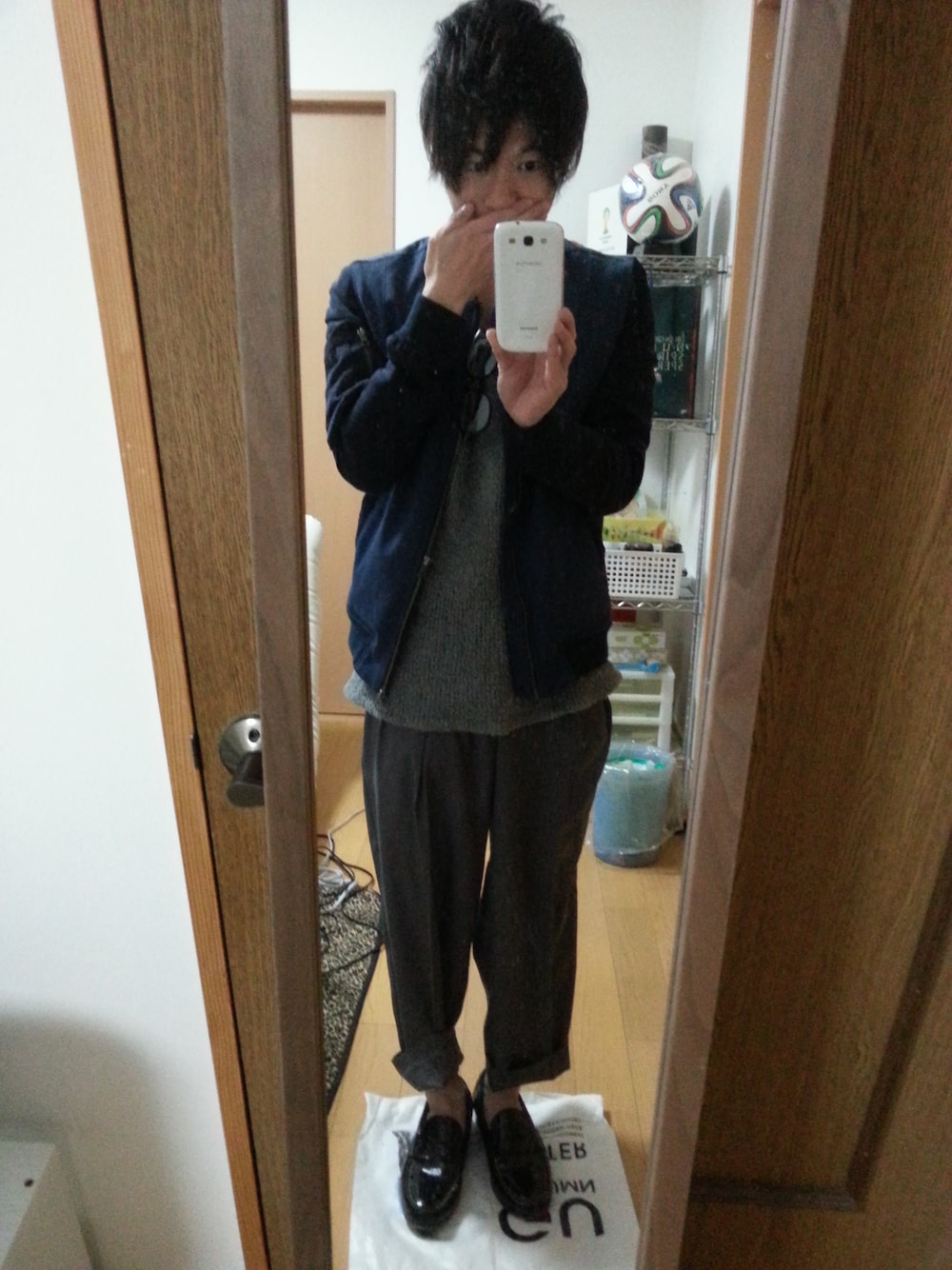 山形県からこんにちは★ 昨日の飲み会コーデ♪ ニットとパンツはグレーのワントーンで、 MA-1羽織ってみました~ ワイドスラックスは個人的に合わせるのが 難スィーので、 ワイドパンツはきこなしてる方は超羨ましい★ 昨日も呑んだくれました-w(*^^*)