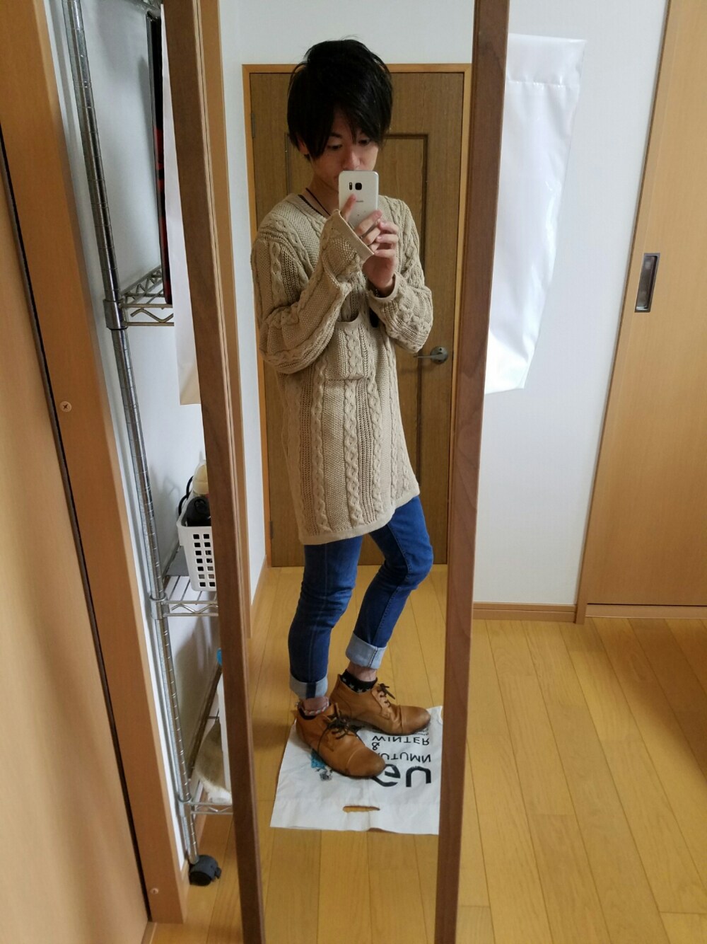 山形県からこんにちわ☆ ひっさしぶりの投稿-w 超シンプルコーデ ニットと靴の色合わせてみました ニットはセールで激安(*^^*) ビックシルエットにしたかったので、Lサイズ→でか過ぎた-w 見ていただき、感謝感謝です♪