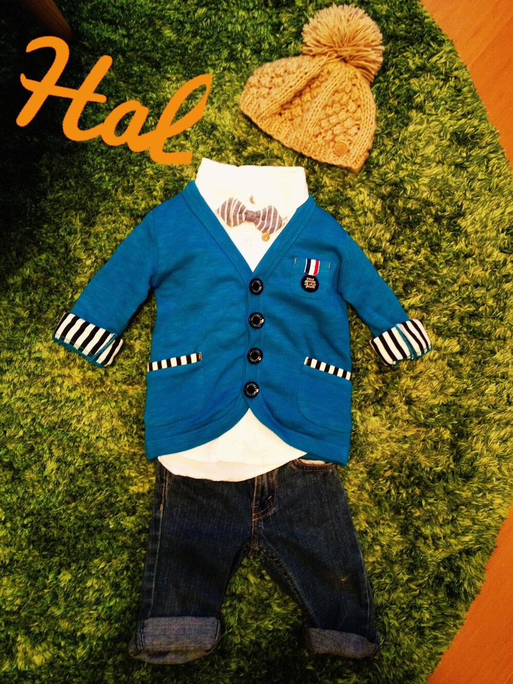 シャツ*babyGAP デニム*LEE ニット帽*goto hollywood 蝶ネクタイ*ハンドメイド 義理ねぇ(義理のお兄さんのお嫁さん)からカーデガン頂きました(^-^) サイズ90だからまだまだ大きくて着れないのでコーデだけ組んでみた♡笑