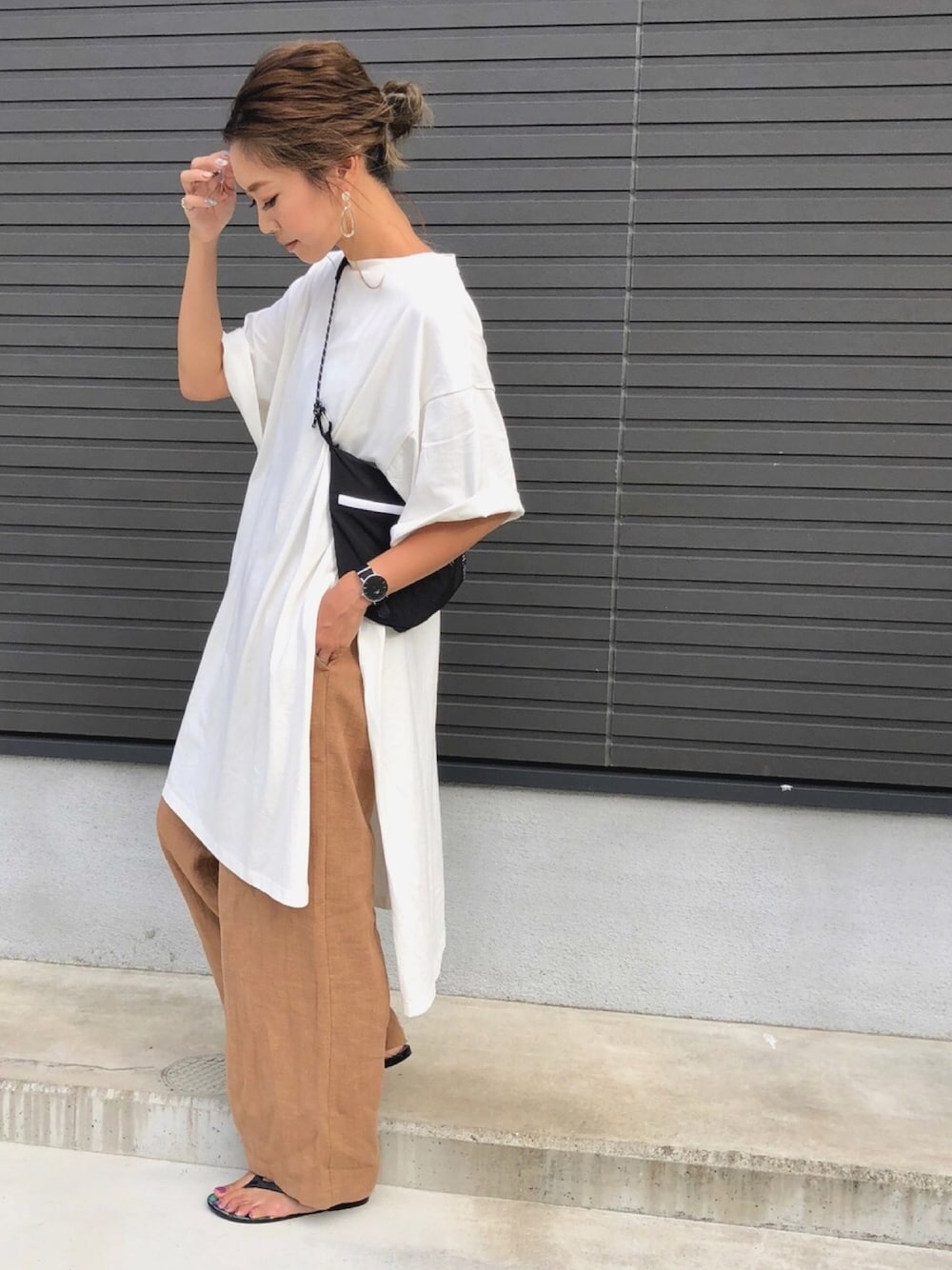 深いスリットのTシャツワンピ♡ 楽チンコーデ👍