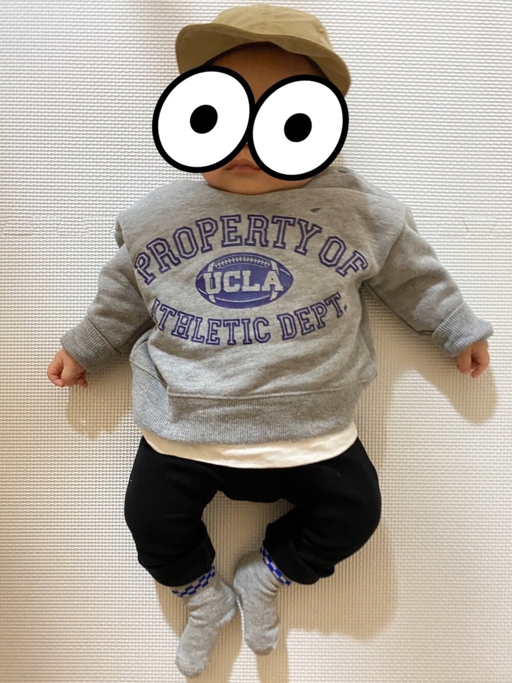 cap...petit main(50cm) sweat...markey's(80) t-shirt...zara baby(9-12month) pants...西松屋(80) socks...西松屋(9-14cm) capはリバーシブルで、khaki ver.です。
