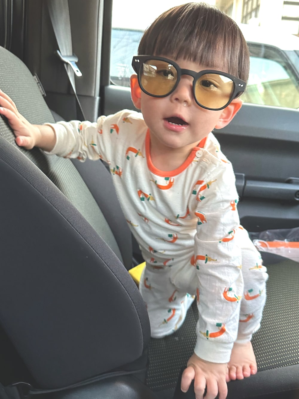 ホワイト系のルームウェア/パジャマを着用したキッズの春コーディネートの1枚目の写真